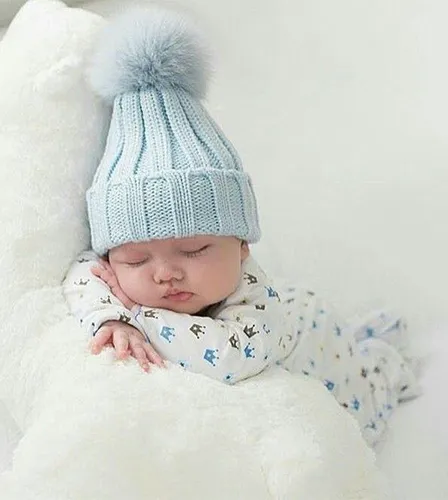 نوزاد پیچیده در پتو با کلاه بافتنی